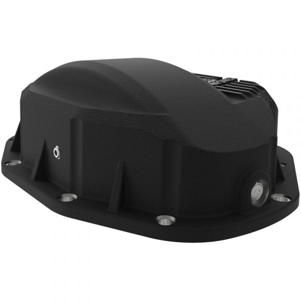 The AFE 46-70032 Dana 80 Differential Cover brings performance engineering to the protection of your truck's rear-end. This differential cover has a 5 quart lube capacity (factory cover holds 4 quarts) at the factory line, a magnetic drain plug, a magnetic tipped fill plug for maximum rear-end protection. Built-in internal and external fins transfer heat from the fluid to the outside air for maximum cooling.  AFE has also designed a large oil level sight glass with calibration plug set to the factory fluid level to eliminate overfilling. This differential cover is constructed out of durable die-cast A380 aluminum with reinforced ribs and a wrinkle black powder coating for maximum strength and styling. This cover fits Dana #80 axles. This cover uses an RTV Silicone Gasket for a leak-free seal.