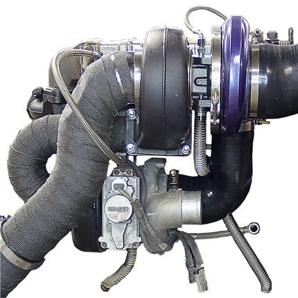 Once installed, the truck will look and drive as a completely factory truck, just simply with more power. The A/C, heater, and creature comforts are still 100% intact. In fact, your emissions equipment can still be used, and remain completely functional. This system keeps everything you love about your truck working, and simply adds the Aurora 7500 to enhance the experience and top-end power. All piping is hand fabricated and powder coated to last the life of the truck, and keep looking good. All hot-pipes are ceramic coated and heat wrapped to keep under hood heat down. The airbox consists of a high-flow filter and sealed cold-air box that keeps the air intake temperatures down. The fit-and-finish of this kit is truly second to none.