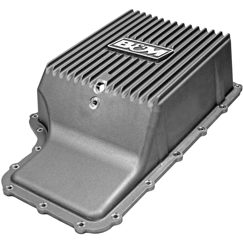 The B&M 70397 Hi-Tek Deep Transmission Pan For 6R140 can help extend the life of your transmission. The A356-T6 hardened-aluminum construction with thick internal and external fins increases durability and cooling properties. This transmission pan adds fluid capacity to your transmission which allows for better cooling, and more cooling means improved efficiency and performance. B&M Designed this deep transmission pan to be an upgrade over the factory pan with a built in drain plug and mounting hardware.