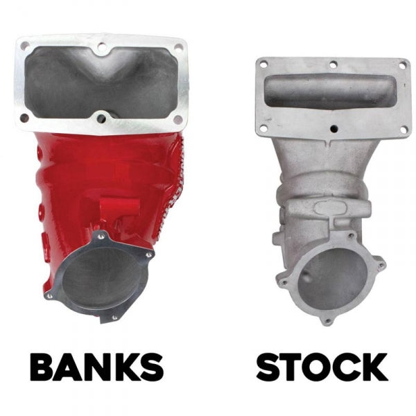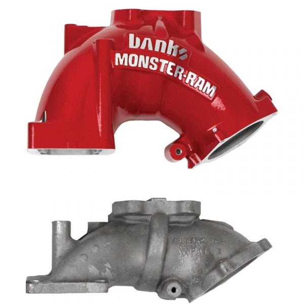 With the Banks Power Monster-Ram Intake With Billet Heater & Intake Plate, your truck's intake manifold is reengineered. To make space for the No. 1 fuel line, the original intake elbow is sharp and constricted. Banks re-engineered the No. 1 fuel line to allow for better airflow and reduced obstruction in this intake. The factory intake manifold only has a flow rate of 421 cfm (32.16 lbs/min), while this intake manifold with intake plate has a flow rate of 936 cfm (71.5 lbs/min). The additional airflow gives the turbine a boost without increasing backpressure. For higher horsepower applications, the improved throttle response means a more power-efficient engine with even more headroom than the factory intake manifold can provide.