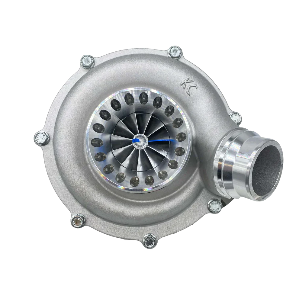 The KC Whistler Stage 1 is a direct turbo drop-in replacement for the 2015-2019 Ford F250 and F350 6.7 Powerstroke trucks. It features our ported KC compressor cover, upgraded billet 63mm compressor wheel, and a 10 blade high flow turbine wheel, giving it that unique 2003 turbo whistle.