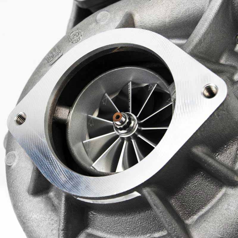 This turbocharger features HFV technology! HFV or High Flow Vane technology is our proprietary customization of the variable vane cage and nozzle ring assembly. This advancement allows the use of a larger turbine wheel for maximum high-load efficiency. Stealth turbos featuring our HFV upgrade are capable of producing more power, spooling up quicker, and managing EGTs better than those limited with factory nozzle rings.